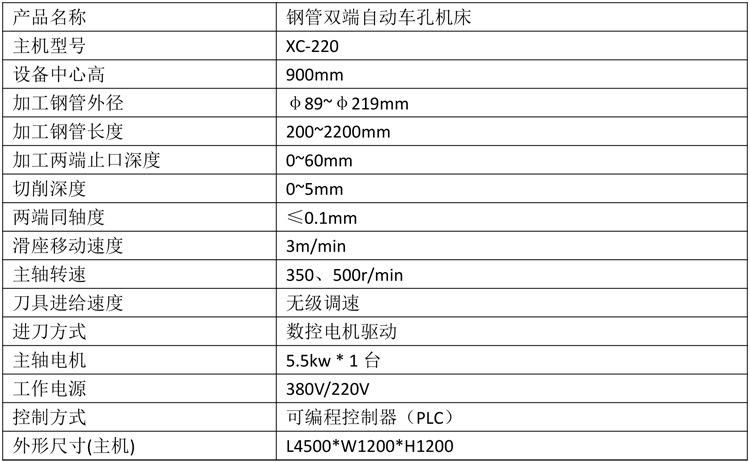 鋼管雙端自動車孔機床產品特性及參數