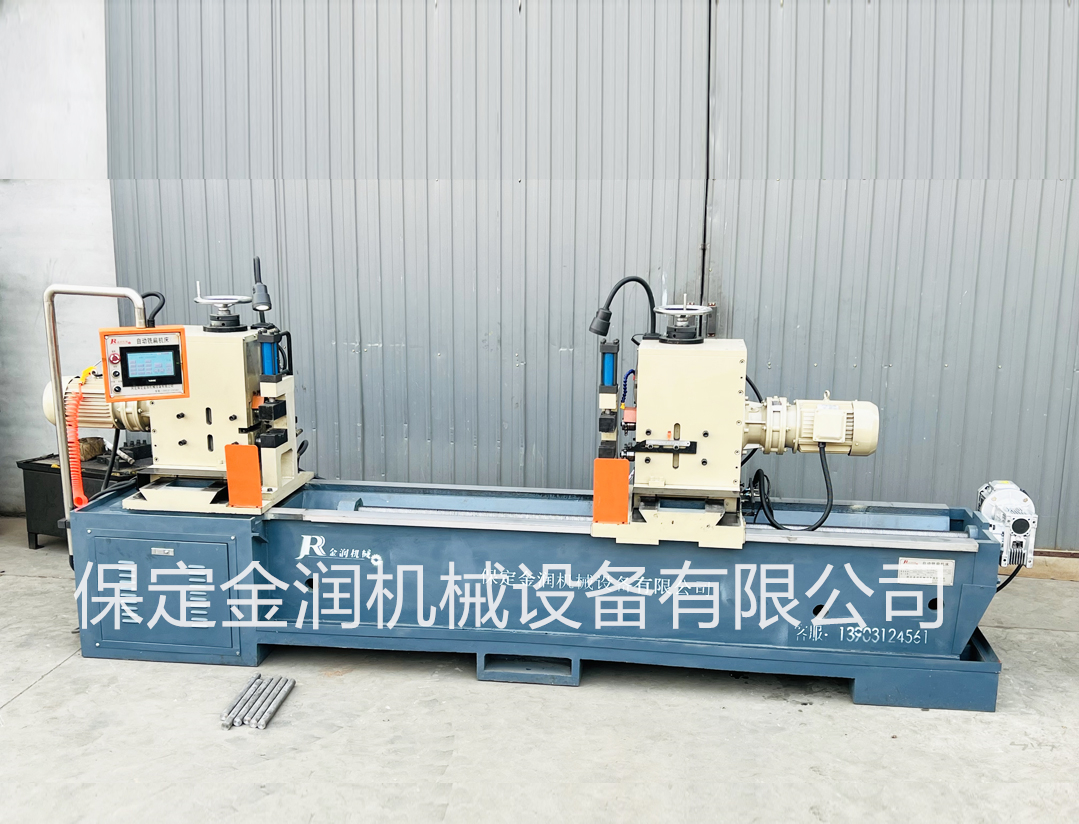 金潤(rùn)銑扁/銑槽機(jī)采用PLC控制技術(shù),是一款托輥軸自動(dòng)生產(chǎn)設(shè)備,具有加工速度快,精度高,刀具省,勞動(dòng)強(qiáng)度低等特點(diǎn),已在多個(gè)行業(yè)廣泛應(yīng)用。 本機(jī)為高配機(jī)型帶有儲(chǔ)料架和自動(dòng)進(jìn)料/卸料裝置(需單獨(dú)采購(gòu)),設(shè)備啟動(dòng)后可以一次性加工完儲(chǔ)料臺(tái)上放置的所有軸料,明顯減少了用工數(shù)量和提升了生產(chǎn)效率,同時(shí)由于設(shè)備運(yùn)轉(zhuǎn)時(shí)操作工的雙手離開(kāi)了工作區(qū)域,非常有利于安全生產(chǎn),實(shí)現(xiàn)無(wú)人值守。(新型托輥軸扁槽加工設(shè)備,基座、滑臺(tái)、主軸座全部采用一次鑄造成型,具有良好的床身穩(wěn)定性和吸能減震作用。)